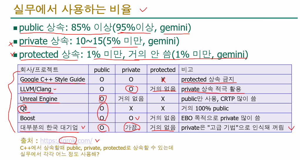 - 남용은 피하는 것이 좋아요: protected를 너무 많이 사용하면 private의 강력한 캡슐화 장점이 희석될 수 있고, 자식 클래스들이 부모 클래스의 내부 구현에 너무 깊이 의존하게 되어 코드 변경 시 복잡도가 증가할 수 있어요.