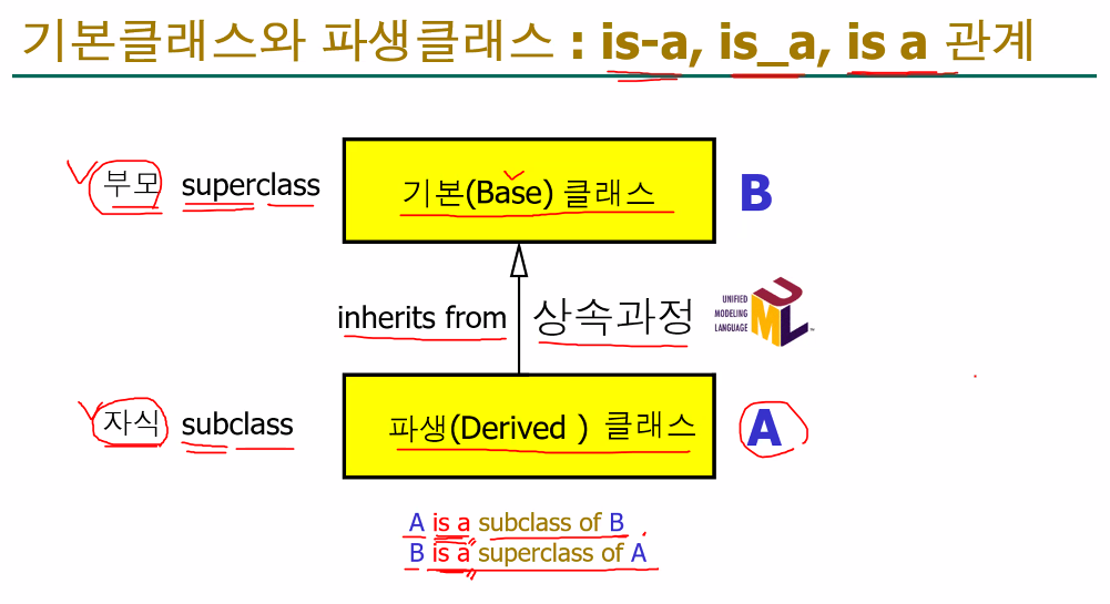 - class A: '기본 클래스' 또는 '부모 클래스'인 A를 정의합니다.