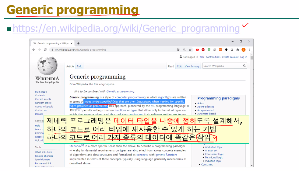 제네릭을 중심으로 템플릿과 유사 기능을 제공하는 언어